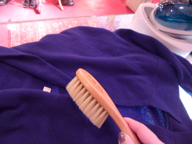 柔らかいブラシで編み目に添って同じ方向にやさしくブラッシングします。
