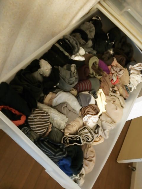 タイツ、レギンスはもう少し深めの引き出しに同じように収納しています。